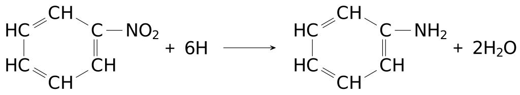 View Original:Reduction of nitrobenzene to aniline.svg (428x69)