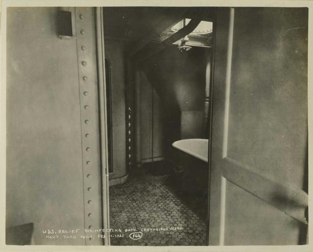 Keywords: history monochrome photo border surreal REEVE 0035182 1. HOSPITALIZATION. 2. NAVY, U.S.S. RELIEF, DISINFECTING BATH, CONTAGIOUS WARD. "U.S.S. RELIEF, DISINFECTING BATH. CONATAGIOUS WARD. NAVY YARD, PHILA. FEB. 11, 1921." [HOSPITAL SHIP. TRANSPORT OF SICK AND WOUNDED. SANITATION. HOSPITAL WARDS.] Courtesy of the National Museum of Health and Medicine REEVE 0035182 1. HOSPITALIZATION. 2. NAVY, U.S.S. RELIEF, DISINFECTING BATH, CONTAGIOUS WARD. "U.S.S. RELIEF, DISINFECTING BATH. CONATAGIOUS WARD. NAVY YARD, PHILA. FEB. 11, 1921." [HOSPITAL SHIP. TRANSPORT OF SICK AND WOUNDED. SANITATION. HOSPITAL WARDS.] Courtesy of the National Museum of Health and Medicine |