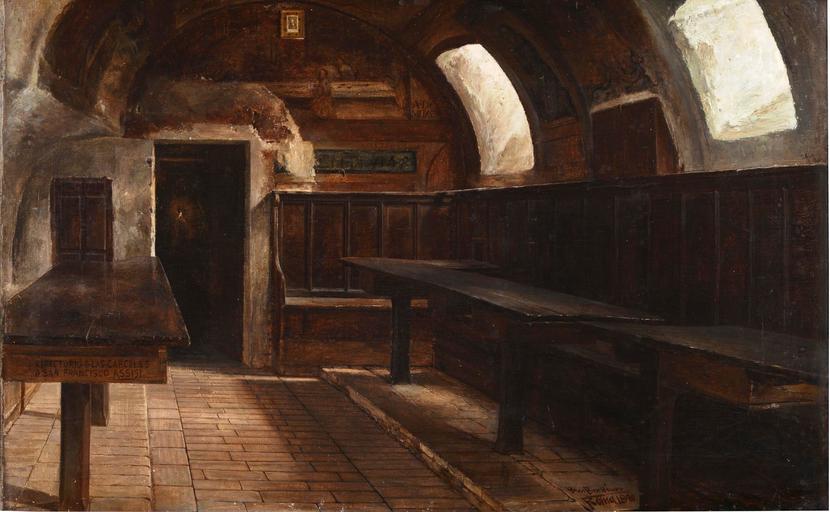 Keywords: Refectorio de las Cárceles de San Francisco en Asís (Museo del Prado).jpg La obra representa la Ermita-santuario de las Cárceles ubicada en el monte Subasio de Asís y en una garganta conocida como Saso dei Maloloco en el entorno de la gruta de San Francisco de Asís 1896 oil on canvas Size cm 71 45 Institution Museo del Prado Depositado en el Institution Museo de Bellas Artes de Valencia https //www museodelprado es/coleccion/obra-de-arte/refectorio-de-las-carceles-de-san-francisco-en/4a3c3487-a531-411d-bb69-1eb7b11c6a42 accession number P05564 https //content1 cdnprado net/imagenes/Documentos/imgsem/4a/4a3c/4a3c3487-a531-411d-bb69-1eb7b11c6a42/f26e4959-5b4c-4664-a46c-8adedf2967e5 jpg PD-old-100 Monte Subasio Blas Benlliure y Gil Spanish 19th-century paintings in the Museo del Prado 19th-century paintings in the Museu de Belles Arts de València 1896 paintings in Spain |