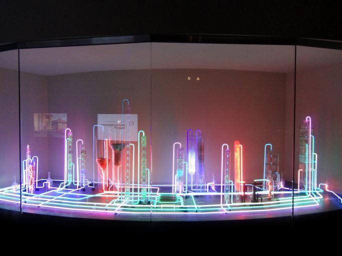 Keywords: Refinery model - Houston Museum of Natural Science - DSC01353.JPG Exhibit in the Houston Museum of Natural Science Houston Texas USA Photography was permitted in the museum without restriction Daderot 2012-10-22 13 46 26 Daderot cc0 cc0 Wiess Energy Hall |