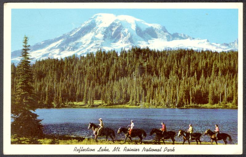 Keywords: vintagepostcard travel mountrainier washington landcape horses nationalpark