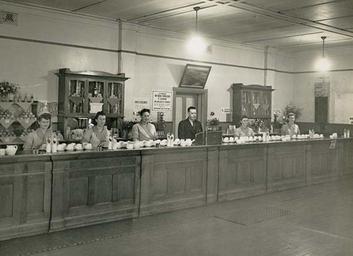 Keywords: archives state records nsw staterecordsnsw newsouthwales blackandwhite taree refreshment room refreshmentroom tea room tearoom cafe people staff waitresses women north coast northcoast historic manning valley historicmanningvalley counter table indoor black and white Taree Railway Refreshment Room - interior showing staff behind counter Dated: 12 July 1947 Digital ID: 17420_a014_a014000102 Rights: www.records.nsw.gov.au/about-us/rights-and-permissions We'd love to hear from you if you use our photos. Many other photos in our collection are available to view and browse on our website using Photo Investigator. Taree Railway Refreshment Room - interior showing staff behind counter Dated: 12 July 1947 Digital ID: 17420_a014_a014000102 Rights: www.records.nsw.gov.au/about-us/rights-and-permissions We'd love to hear from you if you use our photos. Many other photos in our collection are available to view and browse on our website using Photo Investigator.