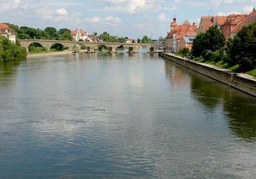 Keywords: Regensburg, Steinerne Brücke02.jpg Steinerne Brücke über die Donau in Regensburg Bayern Deutschland Stone Bridge over the Danube in Regensburg Bavaria Germany own 2005-07-06 Nikater 49 021532 12 094805 Heading E Steinerne Brücke Regensburg