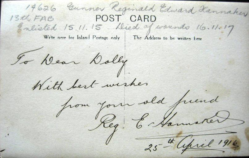 | Keywords: reginald edward hannaker reginaldedwardhannaker australia soldier military ww1 army albert park grammar school albertparkgrammarschool gunner 13th field artillery brigade 13thfieldartillerybrigade kia writing document text drawing sketch whiteboard texture cartoon His war records: discoveringanzacs.naa.gov.au/browse/records/216120 (found on ebay) His war records: discoveringanzacs.naa.gov.au/browse/records/216120 (found on ebay) | ||||