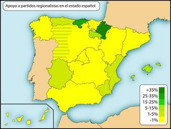 | Keywords: Regionalisme espanya castellà.svg es Apoyo electoral de los partidos regionalistas en España por comunidades autónomas Datos de las elecciones autonómicas de 2006 Cataluña 2007 resto del estado 2008 Andalucía y 2009 Galicia y País Vasco ca Suport electoral a partits regionalistes a l'estat espanyol per comunitats autònomes Dades de les eleccions autonòmiques de 2006 Catalunya 2007 resta de l'estat 2008 Andalusia i 2009 Galícia i Euskadi own Mutxamel based on HansenBCN original Political maps of Spain Regionalism in Spain |