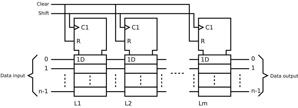 Keywords: Register based parallel SAM.svg en Register based parallel SAM sequential access memory es SAM memoria de acceso secuencial organizada en paralelo realizada con registros own Dizquierdol Made with Dia v0 97 1 Cc-zero Digital circuit diagrams |