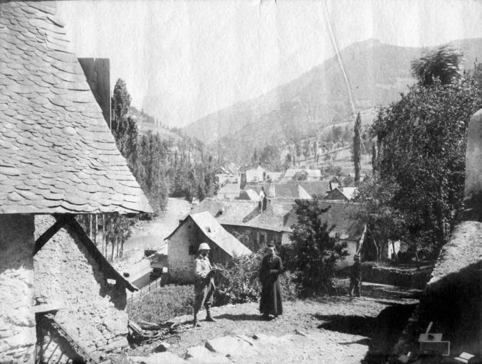 Keywords: blackandwhite monochrome black and white Fonds Trutat - Photographie ancienne Cote : TRU B 208 Localisation : Fonds ancien (S 30) Original non communicable Titre : Regnault et l'abbé Cau Durban, Bordes-sur-Lez, 18 juillet 1882 Auteur : Trutat, Eugène Rôle de l’auteur : Photographe Lieu de création : Bordes-sur-Lez (Ariège) Date de création : 1882 Mesures : : 18 x 13 cm Observations : Notes manuscrites Trutat : "Obj[ectif] hémisph[érique] rapide ; papier Morgan ; B 208". Mot(s)-clé(s) : -- Montagne -- Vallée -- Village -- Maison -- Pierre -- Toit -- Ardoise -- Rue -- Terre -- Homme -- Costume masculin -- Abbé -- Costume religieux -- Soutane -- Chapeau -- Rivière -- Arbre -- Feuillu -- Peuplier -- Versant -- Champ -- Bocage -- Sommet (montagne) -- Cau-Durban, François-David Abbé -- Regnault, Félix -- Castillon-en-Couserans (Ariège ; canton) -- Bordes-sur-Lez (Ariège) -- Couserans (Ariège) -- Biros, Vallée du -- Pyrénées (France) -- 19e siècle, 4e quart Médium : Photographies -- Négatifs sur papier -- Noir et blanc -- Morgan -- Paysages -- Portraits Voir : TRU B 209 Regnault et l'abbé Cau Durban, Bordes-sur-Lez, 18 numerique.bibliotheque.toulouse.fr/cgi-bin/library?c=phot... Bibliothèque de Toulouse. Domaine public Fonds Trutat - Photographie ancienne Cote : TRU B 208 Localisation : Fonds ancien (S 30) Original non communicable Titre : Regnault et l'abbé Cau Durban, Bordes-sur-Lez, 18 juillet 1882 Auteur : Trutat, Eugène Rôle de l’auteur : Photographe Lieu de création : Bordes-sur-Lez (Ariège) Date de création : 1882 Mesures : : 18 x 13 cm Observations : Notes manuscrites Trutat : "Obj[ectif] hémisph[érique] rapide ; papier Morgan ; B 208". Mot(s)-clé(s) : -- Montagne -- Vallée -- Village -- Maison -- Pierre -- Toit -- Ardoise -- Rue -- Terre -- Homme -- Costume masculin -- Abbé -- Costume religieux -- Soutane -- Chapeau -- Rivière -- Arbre -- Feuillu -- Peuplier -- Versant -- Champ -- Bocage -- Sommet (montagne) -- Cau-Durban, François-David Abbé -- Regnault, Félix -- Castillon-en-Couserans (Ariège ; canton) -- Bordes-sur-Lez (Ariège) -- Couserans (Ariège) -- Biros, Vallée du -- Pyrénées (France) -- 19e siècle, 4e quart Médium : Photographies -- Négatifs sur papier -- Noir et blanc -- Morgan -- Paysages -- Portraits Voir : TRU B 209 Regnault et l'abbé Cau Durban, Bordes-sur-Lez, 18 numerique.bibliotheque.toulouse.fr/cgi-bin/library?c=phot... Bibliothèque de Toulouse. Domaine public |