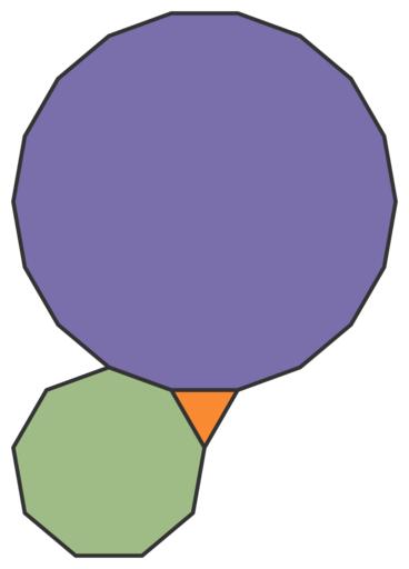 | Keywords: Regular polygons meeting at vertex 3 3 9 18.svg Combinations of regular polygons that can meet at a vertex For Euclidean tilings the internal angles of the polygons meeting at a vertex must add to 360 degrees There are seventeen combinations of regular polygons whose internal angles add up to 360 degrees each being referred to as a species of vertex; in four cases there are two distinct cyclic orders of the polygons yielding twenty-one types of vertex Only eleven of these can occur in a uniform tiling of regular polygons In particular if three polygons meet at a vertex and one has an odd number of sides the other two polygons must be the same If they are not they would have to alternate around the first polygon which is impossible if its number of sides is odd These arrangements are here enumerated 3 polygons of sides 3 7 42 3 polygons of sides 3 8 24 3 polygons of sides 3 9 18 3 polygons of sides 3 10 15 3 polygons of sides 3 12 12 3 polygons of sides 4 5 20 3 polygons of sides 4 6 12 3 polygons of sides 4 8 8 3 polygons of sides 5 5 10 3 polygons of sides 6 6 6 4 polygons of sides 3 3 4 12 4 polygons of sides 3 4 3 12 4 polygons of sides 3 3 6 6 4 polygons of sides 3 6 3 6 4 polygons of sides 4 4 4 4 4 polygons of sides 3 4 4 6 4 polygons of sides 3 4 6 4 5 polygons of sides 3 3 3 3 6 5 polygons of sides 3 3 3 4 4 5 polygons of sides 3 3 4 3 4 6 polygons of sides 3 3 3 3 3 3 2013-06-01 14 17 54 own Dllu cc-zero Polygons that can meet at a vertex Uploaded with UploadWizard Equilateral triangles Regular nonagons Regular octadecagons |
