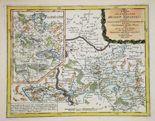 Keywords: Reilly 246b.jpg Die Staaten des Landgrafen zu Hessen-Rheinfels oder die niedere Grafschaft Katzenellenbogen mit den fünf Aemtern an der Werra dem Amte an der Fulda den zwey Aemtern Bowenden und Neuengleichen und dem Vierherrischen Nro 246 Kolorierter Kupferstich Hier als Nro 143 bezeichnet und mit einigen Änderungen im Kartenbild http //cgi ebay de/ws/eBayISAPI dll ViewItem item 330446851896 1793/1794 Creator Franz Johann Joseph von Reilly PD-art File Reilly 246 jpg PD-old-100 Schauplatz der fünf Theile der Welt Old maps of Hesse House of Katzenelnbogen |
