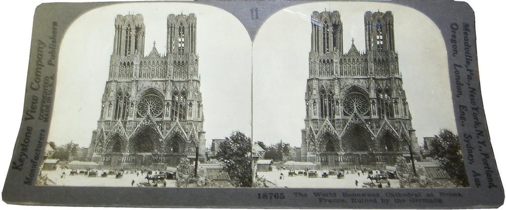 | Keywords: Reims Cathedral Ruined by Germans - Stereocard.JPG Reims Cathedral was bombarded by Germans after they were driven from Reims during World War I photo of stereocard by User Roseohioresident at village museum in Auburn Township Tuscarawas County Ohio Ragersville Ohio Keystone View Company copyright ~ 1919 public domain <gallery> file Reims Cathedral Ruined by Germans - Stereocard - rear JPG rear of card </gallery> PD-1923 Roseohioresident DEFAULTSORT Reims Cathedral -World War I Stereo cards of World War I 1919 in France Reims in World War I Reims Cathedral during World War I |