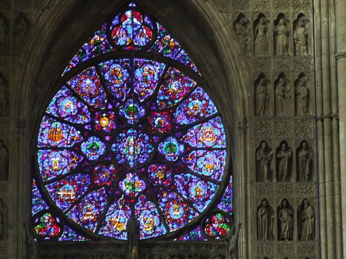 Keywords: Reims Cathedrale Notre Dame interior 004.JPG Cathedral Notre-Dame de Reims France - Rose window tympanum above the front portal - View from the inside มหาวิหารรีมส์ ประ ทศ รั่ง ศส - หน้าต่างกุหลาบ หนือประตูทาง ข้าด้านตะวันตก มองจากด้านใน own Mattana 2008-01-28 Images by Mattana-Reims France West rose windows of Reims Cathedral blurry Rose windows in France interior view |