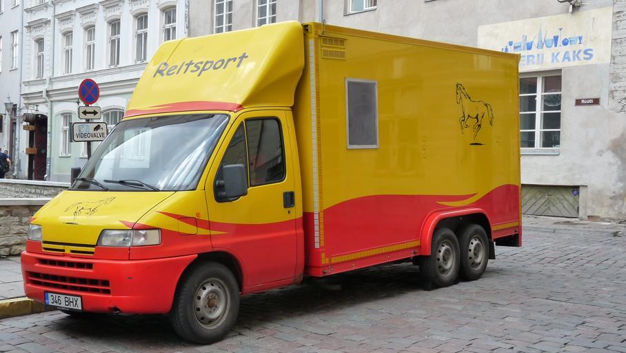Keywords: Reitsport duty vehicle.JPG Tallinn Estonia own 2015-07-08 Dmitry G Trucks in Tallinn Fiat Ducato 1994 Advertisements on vans Horse transport trucks Vehicles in Old Town Tallinn 2015 in road transport