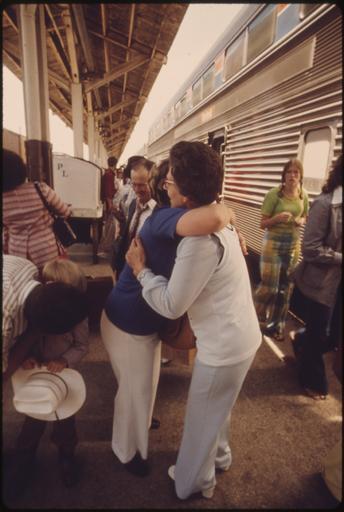 | Keywords: RELATIVES GREET EACH OTHER ON THE LOADING PLATFORM AT THE FORT WORTH, TEXAS, TRAIN STATION AFTER THE LONE STAR... - NARA - 556042.jpg Scope and content General notes 556042 Local identifier 412-DA-13590 Environmental Protection Agency 12/02/1970 - NARA-Author O'Rear Charles 1941- Photographer 3403717 <br /> Fort Worth Tarrant Texas United States North and Central America inhabited place 4201864 32 717 -97 317 <br /> Still Picture Records Section Special Media Archives Services Division NWCS-S National Archives at College Park 8601 Adelphi Road College Park MD 20740-6001 06/1974 Record group Record Group 412 Records of the Environmental Protection Agency 1944 - 2006 Record group ARC 708 DOCUMERICA The Environmental Protection Agency's Program to Photographically Document Subjects of Environmental Concern compiled 1972 - 1977 Series ARC 542493 File unit File unit ARC Variant control numbers Agency-Assigned Identifier 227/30/013590<br /> NAIL Control Number NWDNS-412-DA-13590 Other versions <gallery> File RELATIVES_GREET_EACH_OTHER_ON_THE_LOADING_PLATFORM_AT_THE_FORT_WORTH _TEXAS _TRAIN_STATION_AFTER_THE_LONE_STAR _-_NARA_-_556042 tif tif File RELATIVES_GREET_EACH_OTHER_ON_THE_LOADING_PLATFORM_AT_THE_FORT_WORTH _TEXAS _TRAIN_STATION_AFTER_THE_LONE_STAR _-_NARA_-_556042 jpg jpg </gallery> NARA-cooperation PD-USGov Gulf Colorado and Sante Fe Railroad Passenger Station Lone Star train Hi-Level passenger cars Amtrak in 1974 June 1974 in the United States 1974 in Texas |