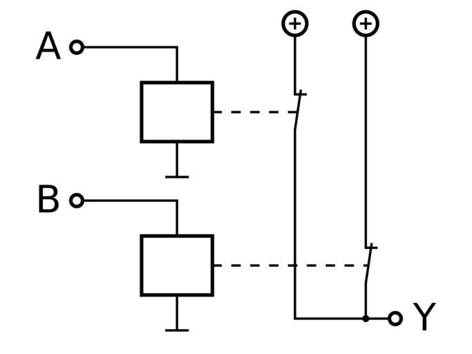 Keywords: Relay nand.svg en nand gate in relay logic Own Biezl Inkscape NAND gates Relay logic
