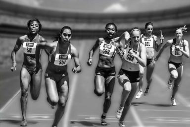 Keywords: relay race competition stadium sport run athletics black and white