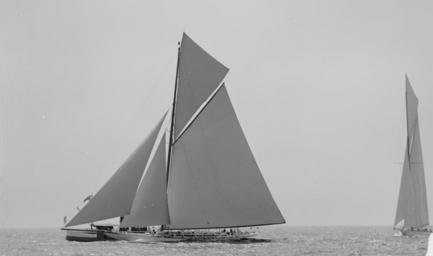 Keywords: Reliance & Shamrock III-6.jpg Reliance and Shamrock III coming for the line in the America's Cup August 22nd 1903 LOC-image det 4a17094 1903-08-22 PD-Detroit Shamrock III ship 1903 Reliance ship 1903 Boats under sail Black and white photographs |