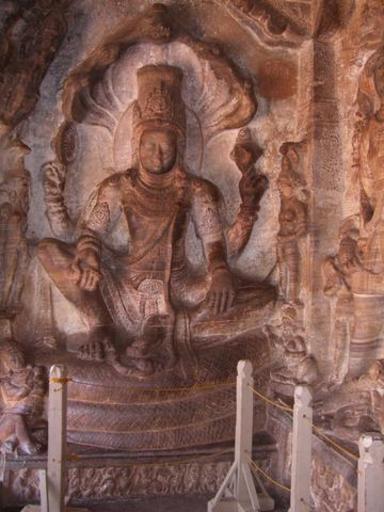 | Keywords: Relief of seated Vishnu at the Badami cave temple no.3.jpg Transwiki approved by w en User Calliopejen1 This Photo was taken by Mr Sudarshan Bhat Khandige during his visit to Pattadakal-Badami Karnataka state India in 2006 The Photograph has been uploaded with full permission from the owner en wikipedia 2006-10-05 Original uploader was Dineshkannambadi at http //en wikipedia org en wikipedia Dineshkannambadi page history wikitable link date/time username edit summary ---- http //en wikipedia org/w/index php title Image Badami_cave3_Vishnu jpg redirect no oldid 188176855 16 47 31 January 2008 w en User Calliopejen1 ---- http //en wikipedia org/w/index php title Image Badami_cave3_Vishnu jpg redirect no oldid 79586500 03 53 5 October 2006 w en User Dineshkannambadi <nowiki> This Photo was taken by Mr Sudarshan Bhat Khandige during his visit to Pattadakal-Badami Karnataka state India in 2006 The Photograph has been uploaded with full permission from the owner </nowiki> Small images Vishnu in sculpture Sculptures in the Badami cave 3 |