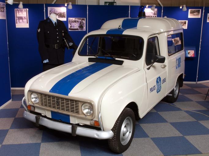 Keywords: Renault police car, Police Liege pic1.JPG Renault police car Police Liege Own 2010-05-15 11 22 44 AlfvanBeem CC-Zero Classic vehicle photographs by Alf van Beem Liege Vintage show 2010 Police vehicles in Liège Renault 4 Fourgonnette