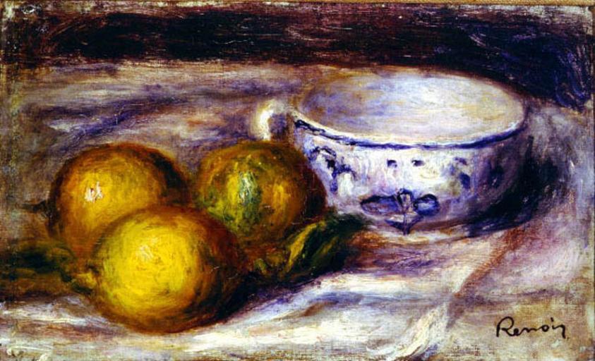 Keywords: Renoir - Natureza-Morta com Limões e Xícara (1910).jpg Artwork Creator Pierre-Auguste Renoir Still-life with lemons and a cup Natureza-morta com limões e xícara 1910 Oil on canvas cm 17 5 28 Fundação Cultural Ema Gordon Klabin São Paulo Brazil http //www emaklabin org br/images/phocagallery/arte_europeia/thumbs/phoca_thumb_l_m0789 jpg PD-old-auto 1919 Other versions Paintings in the Fundação Cultural Ema Gordon Klabin Paintings by Pierre-Auguste Renoir in Brazil 20th-century paintings in Brazil 1910 1910 paintings Still life paintings by Pierre-Auguste Renoir Still life paintings of fruits Paintings of lemons 1910s still-life paintings |