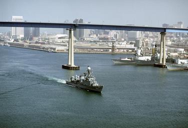 Keywords: Republic of Korea ship Chon Nam (FF 957) sails past Coronado Bridge in San Diego, CA.jpeg ID DN-SC-04-15491 Service Depicted Other Service Operation / Series RIMPAC 92 A starboard view of the Ulsan Class Republic of Korea ship ORK CHON NAM FF 957 as it sails past the Coronado Bridge and the Port of San Diego California CA The ship is participating in RIMPAC 92 Rim of the Pacific Exercise 1992 Location SAN DIEGO CALIFORNIA CA UNITED STATES OF AMERICA USA http //www dodmedia osd mil/Assets/Still/2004/Navy/DN-SC-04-15491 JPEG 1992-06-01 PH2 M CORREA USN PD-USGov-Military-Navy original upload log wikitable date/time username resolution size edit summary ---- 09 23 9 December 2007 User Bin2k1 3 000×2 048 2 55 MB <nowiki> ID DN-SC-04-15491 Service Depicted Other Service Operation / Series RIMPAC 92 A starboard view of the Ulsan Class Republic of Korea ship ORK CHON NAM FF 957 as it sails past the Coronado Bridge and the Port of San Diego</nowiki> 957 Chon Nam ship 1988 RIMPAC 1992 1992 in California San Diego-Coronado Bridge Foreign ships in San Diego Bay |