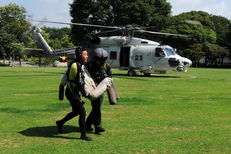 Keywords: Rescue drill 130901-N-DS193-029.jpg en A Japan Maritime Self-Defense Force aircrew member and rescue swimmer carry a mannequin simulating a tsunami victim from a JMSDF SH-60 Seahawk helicopter during a Shizuoka prefectural government-sponsored disaster relief drill in Fuji Shizuoka prefecture Japan Sept 1 2013 U S and Japanese forces worked with local first responders during the event to train as a joint task force providing disaster response during a simulated earthquake and subsequent tsunami 2013-09-01 JMSDF https //www dvidshub net/image/1010948 130901-N-DS193-029 2013-09-05 22 37 FUJI AICHI JP PD-USGov-Military-Navy SH-60 Seahawk Images from DoD uploaded by Fæ |