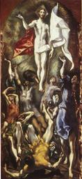 Keywords: Resurreccion Prado.jpg Artwork Q617629 Creator El Greco La Resurrección de Cristo es La obra representa a Jesucristo resucitado between 1597 1600 Oil on canvas size cm 275 127 Institution Museo del Prado Sala 009B https //www museodelprado es/coleccion/obra-de-arte/la-resurreccion-de-cristo/2267dcd8-2b87-43b7-8104-0fb5070c4b5c object history credit line accession number P00825 http //www digibis com/elgreco_digimus/es/musobjects/2659 html ctx freetext 3A5 PD-old-100 The Resurrection Doña María de Aragón reredos |