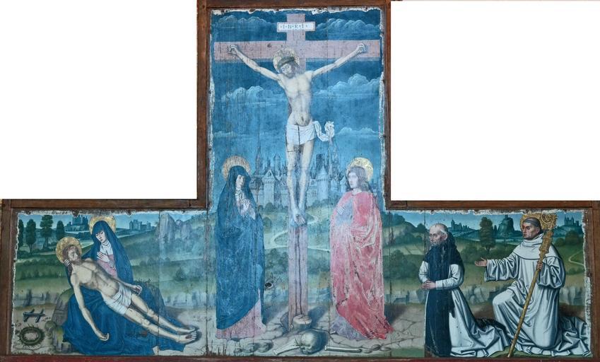 | Keywords: Retable Beaussant - cathédrale d'Angers.jpg Artwork creator Maître du Retable Beaussant ca 1470-1490 painting wood cm 149 241 Cathédrale Saint-Maurice d'Angers object history Tableau de retable donné par le général Beaussant en 2004 Il était recouvert par une peinture de l'Assomption datée de 1699 Cette peinture a été dégagée lors d'une restauration pour laisser apparaître la peinture originelle exhibition history credit line http //www culturecommunication gouv fr/Regions/Drac-Pays-de-la-Loire/Mini-site/Monuments-historiques/Les-monuments-historiques-propriete-de-l-Etat/Cathedrale-d-Angers culturecommunication gouv fr PM49001919 accession number PD-Art-100 Interior of Angers Cathedral Ž Altar pieces in Maine-et-Loire Ž Paintings of Crucifixion of Christ in France Renaissance paintings of Crucifixion of Christ 15th-century paintings of the Crucifixion of Christ Ž Maître du Retable Beaussant |