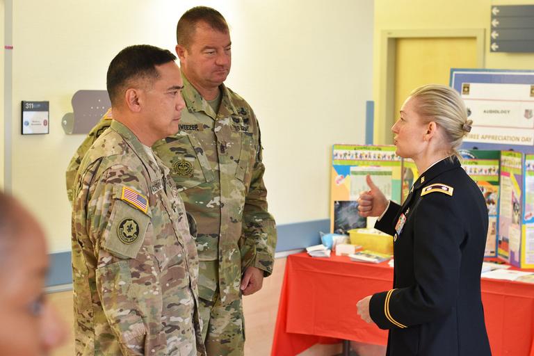 Keywords: u.s. army medical department activity bavaria usarmymedicaldepartmentactivitybavaria bmeddac meddac bavaria meddacbavaria germany u.s. army usarmy col. david richardson coldavidrichardson lt. col. shannon shaw ltcolshannonshaw meddac regional health command europe regionalhealthcommandeurope rhc-e rhce ansbach health clinic ansbachhealthclinic grafenwoehr health clinic grafenwoehrhealthclinic stuttgart health clinic stuttgarthealthclinic vilseck health clinic vilseckhealthclinic health usag bavaria usagbavaria col. lance varney collancevarney resiliency physical fitness physicalfitness mental health mentalhealth healing patient care patientcare patient satisfaction patientsatisfaction patient safety patientsafety soldier readiness soldierreadiness soldier fitness soldierfitness preventive medicine preventivemedicine army triad armytriad immunization flu flu shots flushots influenza retirees military spouses militaryspouses cold war coldwar europe. united states army garrison bavaria europeunitedstatesarmygarrisonbavaria brig. gen. tony aguto briggentonyaguto 7th army training command 7th atc 7tharmytrainingcommand7thatc command sergeant major jeffrey sweezer commandsergeantmajorjeffreysweezer retired military retiredmilitary retiree appreciation day retireeappreciationday people indoor GRAFENWOEHR, Germany – Military retirees were honored at the United States Army Garrison Bavaria's annual Retiree Appreciation Day held at the BMEDDAC Grafenwoehr Health Clinic on Tower Barracks 14 October. More than 200 retirees and annuitants took advantage of services to update medical records, receive flu vaccinations, make medical and dental appointments as well as take advantage of the many community services open to them offered on military posts across Germany. During the course of the event retirees were able to speak with Brig. Gen. Tony Aguto, Commanding General for the 7th Army Training (7th ATC) and 7th ATC Command Sergeant Major Jeffrey D. Sweezer (pictured left and center), USAG Bavaria Commander Col. Lance Varney as well as BMEDDAC Commander Col. David Richardson and Grafenwoehr Health Clinic Commander Lt. Col. Shannon Shaw (pictured right). To learn more about the people and facilities of the U.S. Army Medical Department Activity Bavaria (BMEDDAC) and the clinics they support in Ansbach, Grafenwoehr, Hohenfels, Stuttgart and Vilseck visit the BMEDDAC website at rhce.amedd.army.mil/bavaria Photo by Michael Beaton, U.S. Army Medical Department Activity Bavaria Public Affairs (Released). GRAFENWOEHR, Germany – Military retirees were honored at the United States Army Garrison Bavaria's annual Retiree Appreciation Day held at the BMEDDAC Grafenwoehr Health Clinic on Tower Barracks 14 October. More than 200 retirees and annuitants took advantage of services to update medical records, receive flu vaccinations, make medical and dental appointments as well as take advantage of the many community services open to them offered on military posts across Germany. During the course of the event retirees were able to speak with Brig. Gen. Tony Aguto, Commanding General for the 7th Army Training (7th ATC) and 7th ATC Command Sergeant Major Jeffrey D. Sweezer (pictured left and center), USAG Bavaria Commander Col. Lance Varney as well as BMEDDAC Commander Col. David Richardson and Grafenwoehr Health Clinic Commander Lt. Col. Shannon Shaw (pictured right). To learn more about the people and facilities of the U.S. Army Medical Department Activity Bavaria (BMEDDAC) and the clinics they support in Ansbach, Grafenwoehr, Hohenfels, Stuttgart and Vilseck visit the BMEDDAC website at rhce.amedd.army.mil/bavaria Photo by Michael Beaton, U.S. Army Medical Department Activity Bavaria Public Affairs (Released). |
