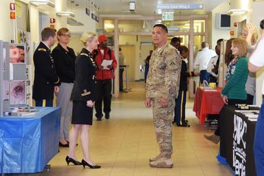 Keywords: u.s. army medical department activity bavaria usarmymedicaldepartmentactivitybavaria bmeddac meddac bavaria meddacbavaria germany u.s. army usarmy col. david richardson coldavidrichardson lt. col. shannon shaw ltcolshannonshaw meddac regional health command europe regionalhealthcommandeurope rhc-e rhce ansbach health clinic ansbachhealthclinic grafenwoehr health clinic grafenwoehrhealthclinic stuttgart health clinic stuttgarthealthclinic vilseck health clinic vilseckhealthclinic health usag bavaria usagbavaria col. lance varney collancevarney resiliency physical fitness physicalfitness mental health mentalhealth healing patient care patientcare patient satisfaction patientsatisfaction patient safety patientsafety soldier readiness soldierreadiness soldier fitness soldierfitness preventive medicine preventivemedicine army triad armytriad immunization flu flu shots flushots influenza retirees military spouses militaryspouses cold war coldwar europe. united states army garrison bavaria europeunitedstatesarmygarrisonbavaria brig. gen. tony aguto briggentonyaguto 7th army training command 7th atc 7tharmytrainingcommand7thatc command sergeant major jeffrey sweezer commandsergeantmajorjeffreysweezer retired military retiredmilitary retiree appreciation day retireeappreciationday indoor GRAFENWOEHR, Germany – Military retirees were honored at the United States Army Garrison Bavaria's annual Retiree Appreciation Day held at the BMEDDAC Grafenwoehr Health Clinic on Tower Barracks 14 October. More than 200 retirees and annuitants took advantage of services to update medical records, receive flu vaccinations, make medical and dental appointments as well as take advantage of the many community services open to them offered on military posts across Germany. During the course of the event retirees were able to speak with Brig. Gen. Tony Aguto (pictured center), Commanding General for the 7th Army Training (7th ATC) and 7th ATC Command Sergeant Major Jeffrey D. Sweezer. USAG Bavaria Commander Col. Lance Varney as well as BMEDDAC Commander Col. David Richardson and Grafenwoehr Health Clinic Commander Lt. Col. Shannon Shaw (pictured left). To learn more about the people and facilities of the U.S. Army Medical Department Activity Bavaria (BMEDDAC) and the clinics they support in Ansbach, Grafenwoehr, Hohenfels, Stuttgart and Vilseck visit the BMEDDAC website at rhce.amedd.army.mil/bavaria Photo by Michael Beaton, U.S. Army Medical Department Activity Bavaria Public Affairs (Released). GRAFENWOEHR, Germany – Military retirees were honored at the United States Army Garrison Bavaria's annual Retiree Appreciation Day held at the BMEDDAC Grafenwoehr Health Clinic on Tower Barracks 14 October. More than 200 retirees and annuitants took advantage of services to update medical records, receive flu vaccinations, make medical and dental appointments as well as take advantage of the many community services open to them offered on military posts across Germany. During the course of the event retirees were able to speak with Brig. Gen. Tony Aguto (pictured center), Commanding General for the 7th Army Training (7th ATC) and 7th ATC Command Sergeant Major Jeffrey D. Sweezer. USAG Bavaria Commander Col. Lance Varney as well as BMEDDAC Commander Col. David Richardson and Grafenwoehr Health Clinic Commander Lt. Col. Shannon Shaw (pictured left). To learn more about the people and facilities of the U.S. Army Medical Department Activity Bavaria (BMEDDAC) and the clinics they support in Ansbach, Grafenwoehr, Hohenfels, Stuttgart and Vilseck visit the BMEDDAC website at rhce.amedd.army.mil/bavaria Photo by Michael Beaton, U.S. Army Medical Department Activity Bavaria Public Affairs (Released). |