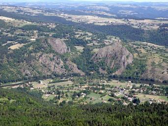 | Keywords: Retournac Gerbizon2.JPG Retournac dép de la Haute-Loire France région Auvergne <br/> Vue prise de la table d ™orientation du mont Gerbizon dans la comm de Chamalières-sur-Loire Coup d ™Å“il dirigé vers le nord <br/> à l ™avant-plan dans la plaine au pied du versant nord boisé du mont Gerbizon hameau de Ventressac appartenant à la comm de Chamalières-sur-Loire <br/> Derrière Ventressac la Loire traverse la photo de part en part coulant de gauche à droite et formant ici la limite entre les communes de Chamalières et de Retournac <br/> Sur la rive opposée c'est-à -dire gauche septentrionale se dressent bordant la Loire deux sucs de hauteur sensiblement égale dont celui de gauche est le suc de Périllade alt 719m et celui de droite alt 706 m porte les ruines du château d ™Artias Derrière le suc d ™Artias un peu à sa gauche hameau du Corset comm de Retournac Derrière le suc de Périllade mais plus loin le hameau d ™Artites comm de Retournac Au-delà derrière la longue étendue boisée traversant la photo en diagonale et près du bord droit de la photo hameau de Lingoustre comm de Retournac <br/> Plus loin encore derrière une autre bande boisée diagonale le village de Solignac-sous-Roche self-photographed Torsade de Pointes 2009-08-13 Retournac |