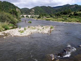 Keywords: Retournac Loire1.JPG Retournac dép de la Haute-Loire France Auvergne La Loire vue du pont-barrage submersible à env 1km en aval de Retournac au nord-est de la localité Le pont à arches au second plan est le viaduc de la ligne ferroviaire Le Puy • Saint-Étienne Derrière ce viaduc falaises des Côtes de Saint-Ignac Le sommet tout au loin à droite est la montagne de la Madeleine comm de Retournac Coup d'oeil vers le nord self-photographed Torsade de Pointes Août 2009 Retournac Loire River in Haute-Loire Pont ferroviaire de Brenas Retournac |