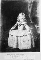 Keywords: Retrato de la infanta Margarita, by studio of Diego Velázquez.jpg Artwork Creator Diego Velázquez de Porträt der Infantin Margerita im Alter von etwa 3 Jahren es Retrato de la infanta Margarita 1651-1673 ca 1653-1656 Oil on canvas cm 128 5 100 Stadelsches Kunstinstitut Frankfurt http //picasaweb google com/EnrikeCdC/VelazquezObraCompleta 5295182063285929170 Other versions <gallery> File Diego Velázquez 028 jpg Kunsthistorisches Museum File Diego Velázquez 028b jpg File Retrato de la infanta Margarita 2 by Diego Velázquez jpg </gallery> PD-old-100 picasareviewunnecessary DEFAULTSORT 1653-1656; Margaret Theresa of Spain Infanta Margarita Teresa by Velazquez Kunsthistorisches Museum 1656 Black and white reproductions of portrait paintings in color Replicas of paintings |