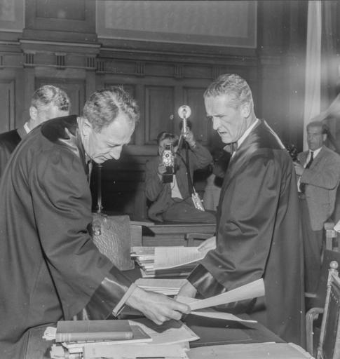 | Keywords: rettsak litteratur forfattere oslo norge blackandwhite monochrome indoor black and white Behandling av ankesak i Høyesterett 9. mai 1958 i forbindelse med utgivelsen av Sangen om den røde rubin. Fotograf: Fjørtoft, Bjørn, Billedbladet NÅ, Riksarkivet (RA/PA-0797/U/Ue/L0064/0012) Behandling av ankesak i Høyesterett 9. mai 1958 i forbindelse med utgivelsen av Sangen om den røde rubin. Fotograf: Fjørtoft, Bjørn, Billedbladet NÅ, Riksarkivet (RA/PA-0797/U/Ue/L0064/0012) | ||||