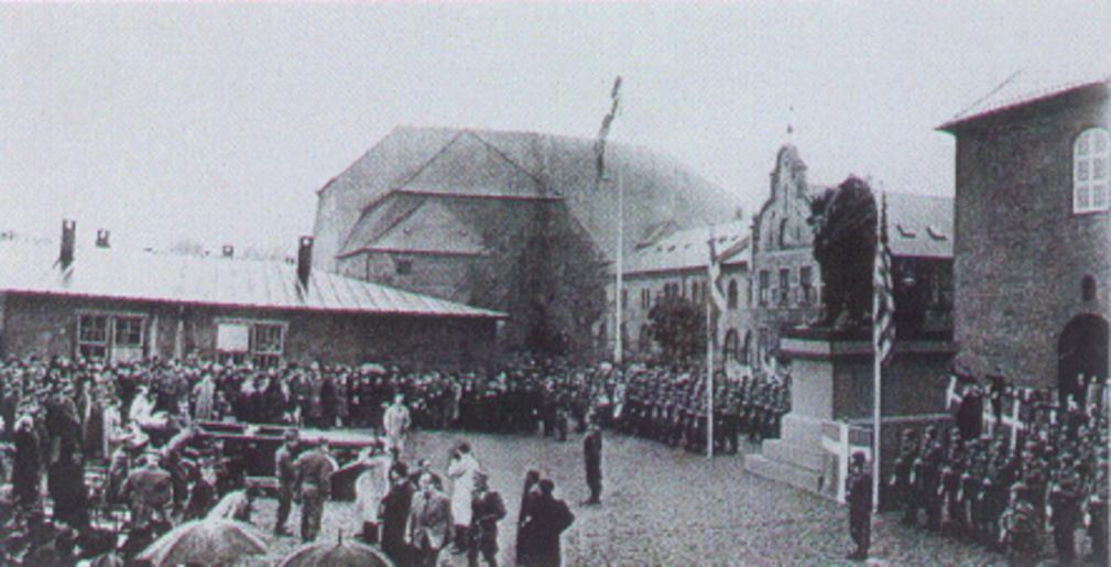 | Keywords: Return of the Isted Lion (1945).gif en An image of the official U S handover of the Isted Lion to Denmark Løven er lavet af H W Bissen og er et monument for den danske sejr ved slaget ved Isted den 25 juli 1850 Den stod oprindeligt i Flensborg fra 1862 men blev senere taget af tyskerne til Berlin i 1864 Efter Anden Verdenskrig overdrog den amerikanske general Barker Istedløven til det danske folk symboliseret i kong Christian X Begivenheden hvor løven opstilles i Tøjhusmuseets gård i 1945 ses på fotografiet http //www danskskaanskforening dk/DST/1-02-isted htm 1945 PD-Denmark50 PD-1996 Denmark Flensburg Lion Copenhagen 1945-2011 Ray Barker Tøjhusmuseet |