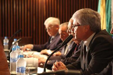 Keywords: Nesta segunda-feira (14), durante a abertura da reunião do Movimento Pró-Paraná para discutir a Reforma Política, no Plenarinho da Assembleia Legislativa, o presidente da AL, deputado Valdir Rossoni (PSDB), revelou a existência de uma verdadeira “indústria de aposentadorias” na Casa. “Montamos uma força-tarefa de diretores que está fazendo o levantamento de cada aposentadoria. Já encontramos o caso de uma pessoa que se aposentou ganhando R$ 4 mil e, da noite para o dia, essa aposentadoria saltou para R$ 17 mil”. Leia matéria no site www.alep.pr.gov.br Foto: Nani Gois / Assembleia Legislativa do Paraná |