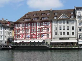 Keywords: reuss river lucerne switzerland swiss bridge shops restaurants la terrazza ristorante europe architecture tourism town sightseeing historical