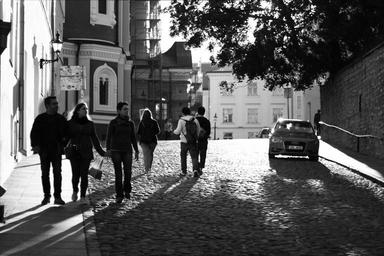 Keywords: reverse light tallinn people street city center buildings old date