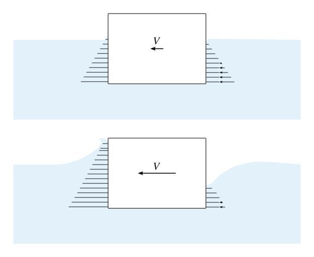 Keywords: Reversibility wave.svg en A conceptual experiment to illustrate irreversible movement When an object is moved slowly in water top the pressure distribution is almost the same on both sides When it is moved quickly a pressure imbalance occurs movements back and forth will not produce/require opposed amounts of energy 2015-03 own Olivier Cleynen other versions cc-zero SVG physics Uploaded with UploadWizard |