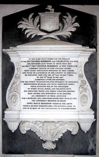Keywords: RevThomasHooperMorrison (1768-1824) AlwingtonChurch Devon.PNG en Mural monument to Rev Thomas Hooper Morrison 1768-1824 of Yeo Vale Alwington Devon In Yeo Vale Chapel of Alwington Church own photo Lobsterthermidor <span class signature-talk ></span> 12 47 30 March 2015 UTC 2015 Wall mounted church monuments in Devon St Andrew's Church Alwington interior |