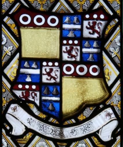 Keywords: RevThomasHooperMorrisonArms YeoValeChapel AlwingtonChurch Devon.PNG en Arms of Rev Thomas Hooper Morrison 1768-1824 of Yeo Vale in the parish of Alwington Devon son and heir of Rev Hooper Morrison of Yeo Vale by his wife Charlotte Orchard 1735-1791 sister and in her issue heiress of Paul II Orchard 1739-1812 of Hartland Abbey Devon Arms Quarterly of 4 1 4 Or on a chief gules three chaplets of the first Morrison here shown with chaplets argent not or ; 2 3 quarterly of 4 1 4 Azure a fess between three escallops argent erroneous arms of Orchard which should be Azure a chevron argent between three pears pendant or as visible in Hartland Churchhttps //www flickr com/photos/trelewis/3461042400/in/set-72157617013271579 and quartered by the Stucley Baronets of Hartland Abbey ; 2 3 Argent a lion rampant gules on a chief of the last three plates unknown own photo Lobsterthermidor <span class signature-talk ></span> 15 24 28 March 2015 UTC Stained glass 1861; photo 2015 St Andrew's Church Alwington interior Morrison arms Stained glass windows in Devon Coats of arms on stained glass windows in England |