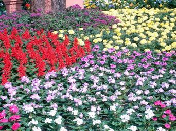 Keywords: RFE06 053.jpg in Royal Flora Expo 2006 Chiangmai Thailand own Love Krittaya Royal Flora Expo 2006 Flower gardens Unidentified Impatiens Salvia splendens Tagetes patula