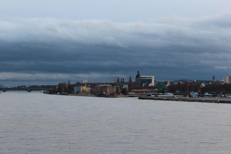 Keywords: rhine high water mainz river clouds sky clouded sky water