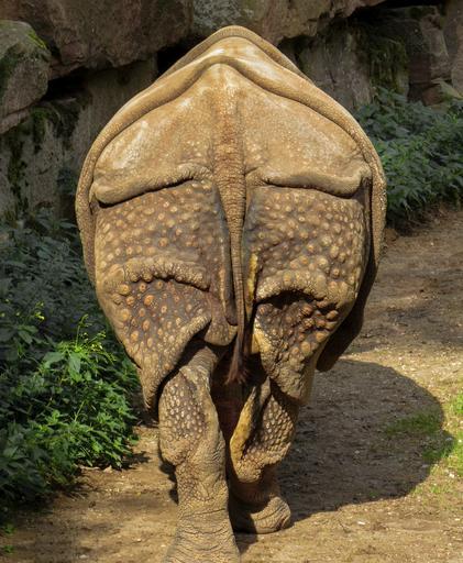 Keywords: rhino pachyderm zoo big game close frontal force rear tail rump
