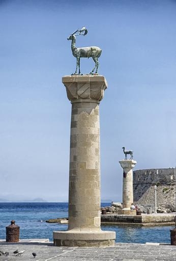 Keywords: rhodes greece port harbor water sky clouds monuments sculptures inlet hdr
