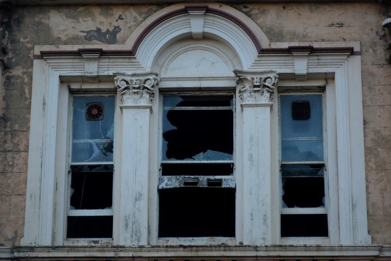 Keywords: rhombus dilapidated building vandalism smashed windscreen