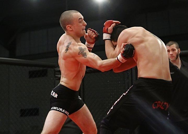 Keywords: RichmanPunch.jpg en Mike Richman fighting Ryan Stock Own Work Tuesdayclub 2-27-10 Mixed martial arts bouts People wearing MMA gloves Mike Richman