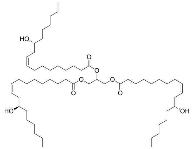 Keywords: Ricinolein.svg Chemical structure of ricinolein Own 19 53 3 February 2011 UTC Ed Edgar181 Triglycerides