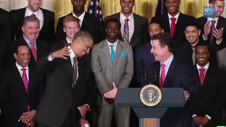 Keywords: Rick Pitino and President Obama share a laugh.jpg en University of Louisville men's basketball coach Rick Pitino and President Barack Obama share a laugh during the White House ceremony honoring Louisville for the team's 2013 national championship 2013-07-23 https //www youtube com/watch v cz00Z8Cu9a4 The White House other versions PD-USGov Uploaded with UploadWizard Rick Pitino Barack Obama with sportspeople Kevin Keatts Chane Behanan |