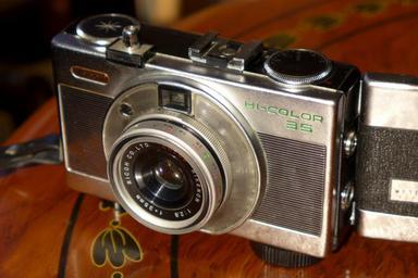 Keywords: camera vintage electronics lens indoor - Fixed focal length 35 mm. - Manual focus. - Shutter speed 1/30 - 1/300". - Aperture f/2.8 - 22 - auto (shutter prio) by means of cadmium sulphide photo detector servo. - When external flash is used on hot shoe, manual aperture must be calculated from formula = flash grade / distance. - Viewfinder with 0.33x magnification, visible focus setting and dot that changes color when exposure is enough, depending on selected film ISO (ISO was still called ASA). - 35 mm film, ISO 25 - 400, spring operated. - Steel body. - Made in Japan. - Fixed focal length 35 mm. - Manual focus. - Shutter speed 1/30 - 1/300". - Aperture f/2.8 - 22 - auto (shutter prio) by means of cadmium sulphide photo detector servo. - When external flash is used on hot shoe, manual aperture must be calculated from formula = flash grade / distance. - Viewfinder with 0.33x magnification, visible focus setting and dot that changes color when exposure is enough, depending on selected film ISO (ISO was still called ASA). - 35 mm film, ISO 25 - 400, spring operated. - Steel body. - Made in Japan. |