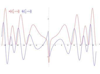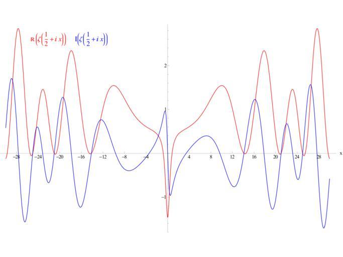 Keywords: RiemannCriticalLine.svg validSVG en Graph of real red and imaginary blue parts of the critical line Re z 1/2 of the Riemann zeta function Own work Made with Mathematica using the following code <code><nowiki>ShowPlot ReZeta1/2+I x ImZeta1/2+I x x -30 30 AxesLabel-> x PlotStyle-> Red Blue Ticks-> Table4x-28 x 0 14 ImageSize-> 800 600 GraphicsTextStyle\DoubleStruckCapitalR\Zeta I x + 1/2 14 Red Background ->White -22 2 6 GraphicsTextStyle\GothicCapitalI\Zeta I x + 1/2 14 Blue Background ->White -14 2 6 </nowiki></code> Slonzor 20/11/08 Public Domain Riemann zeta function |